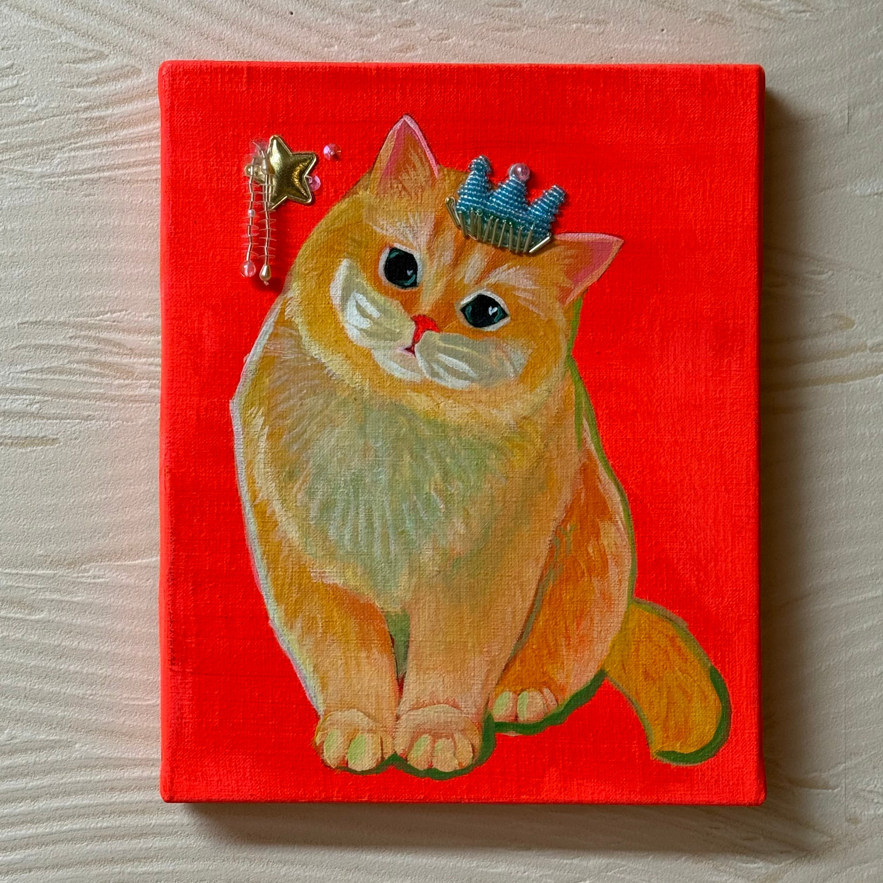 ねこ絵画 刺繍部分あり